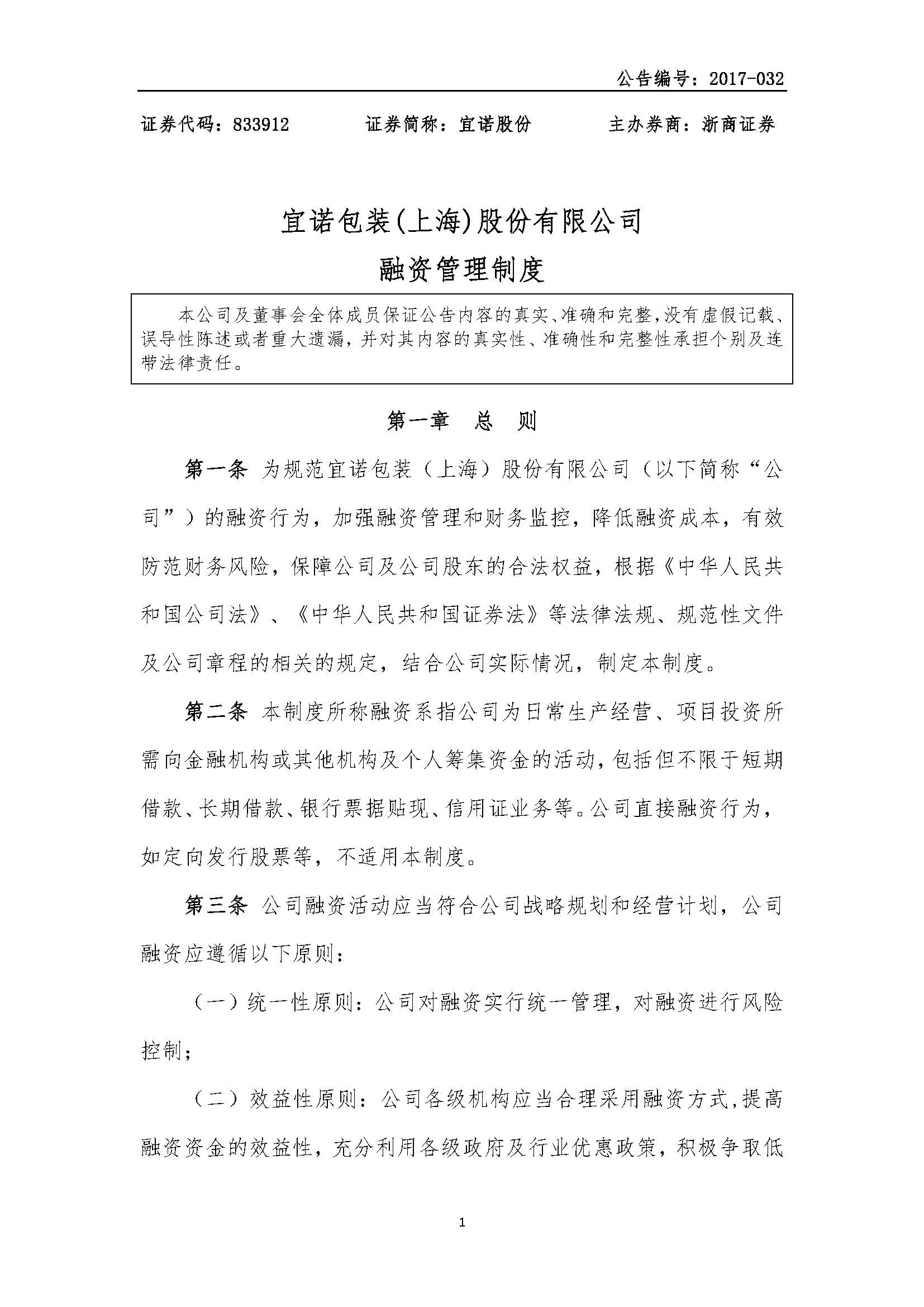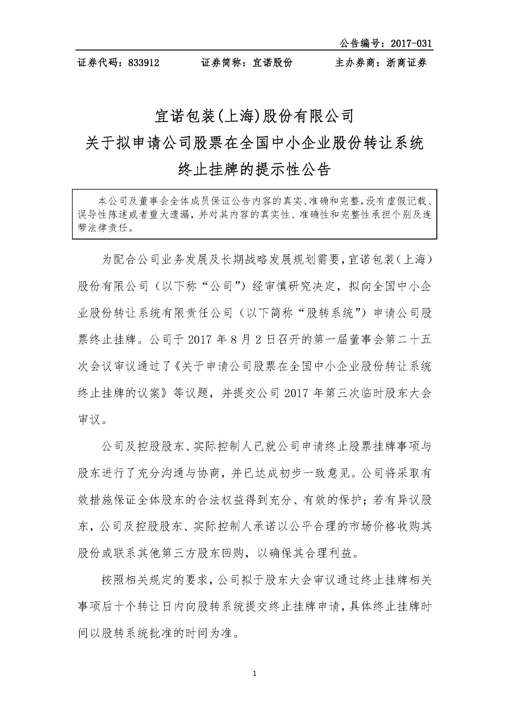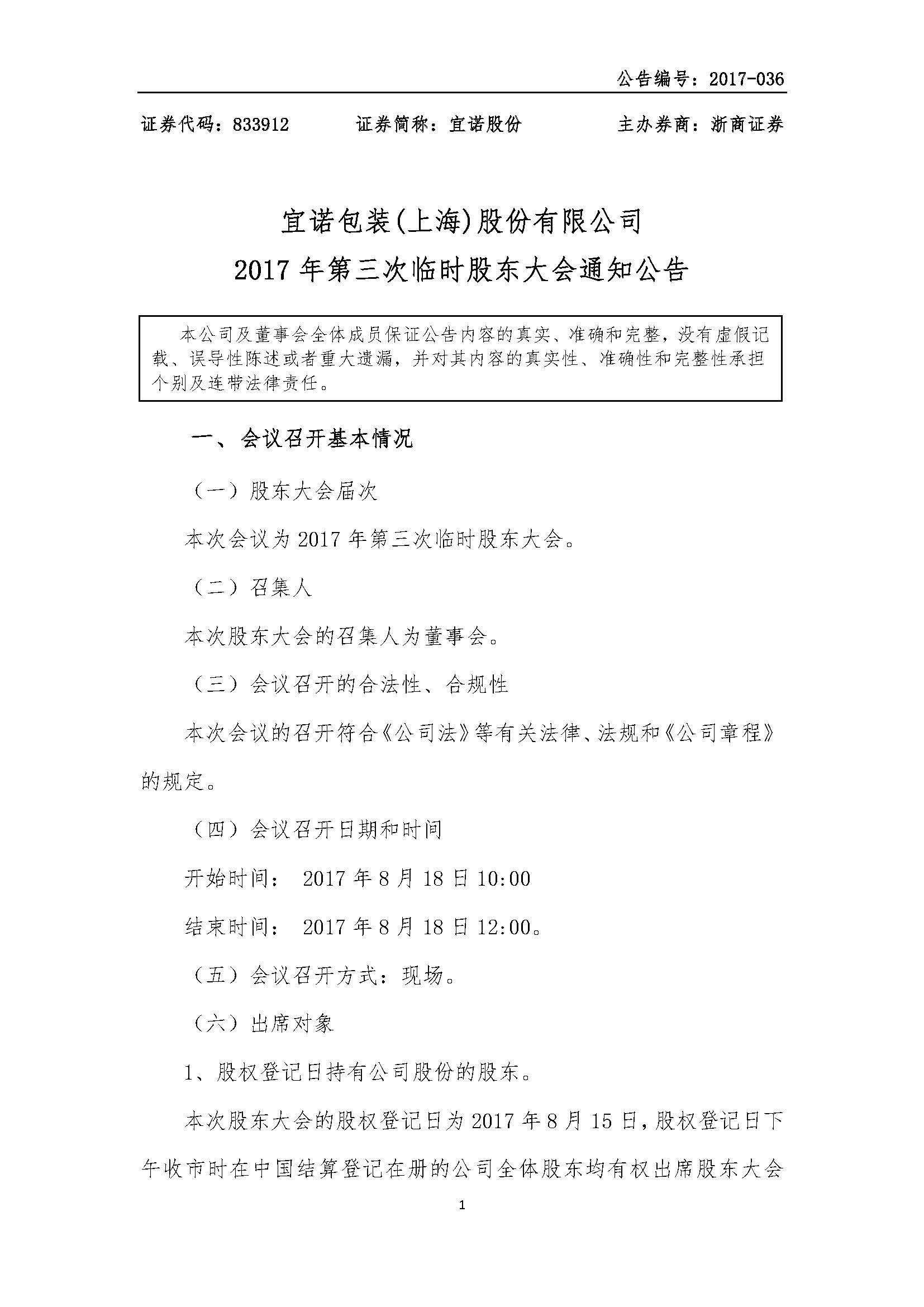 [临时公告]宜诺股份:2017年第三次临时股东大会通知公告