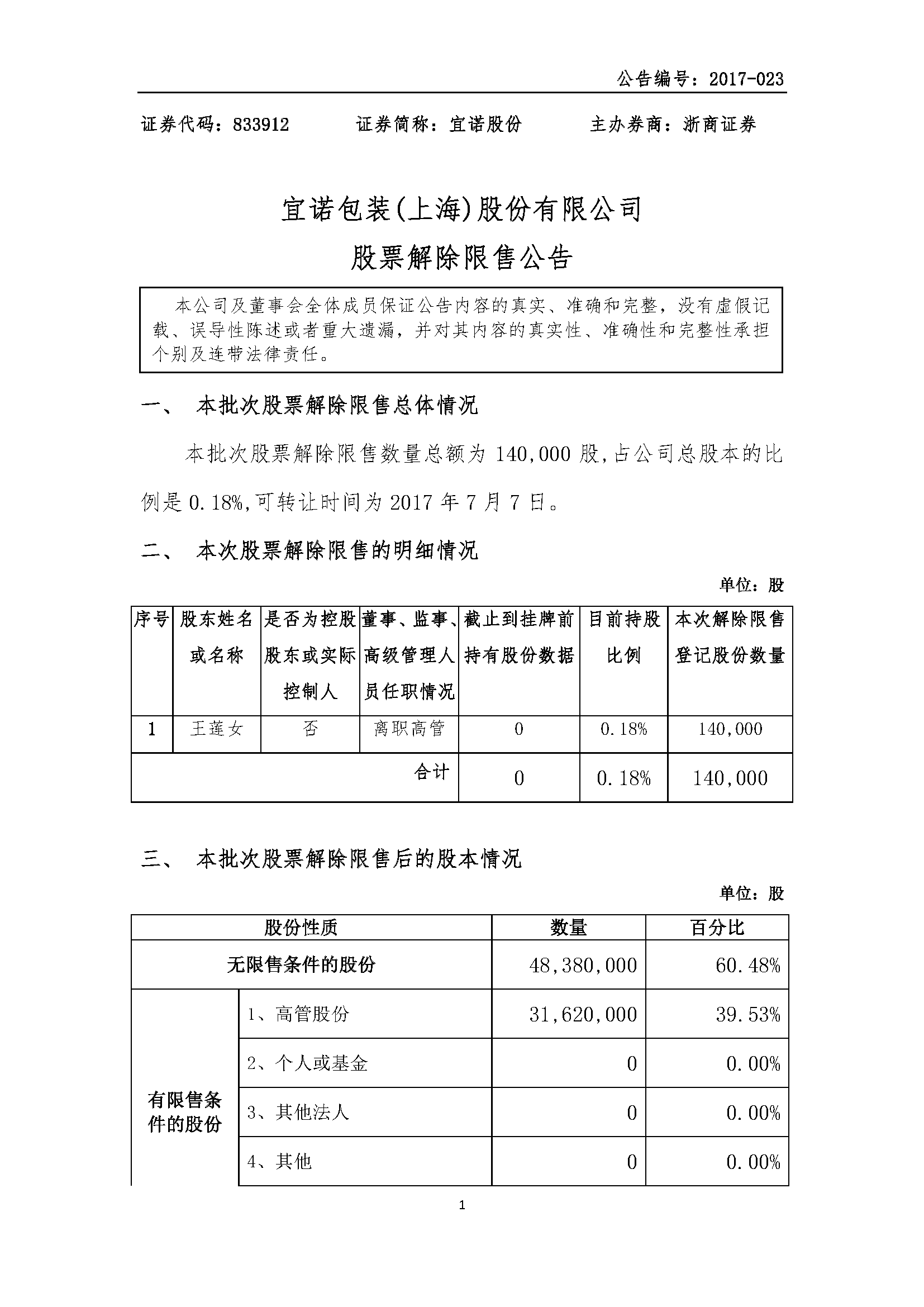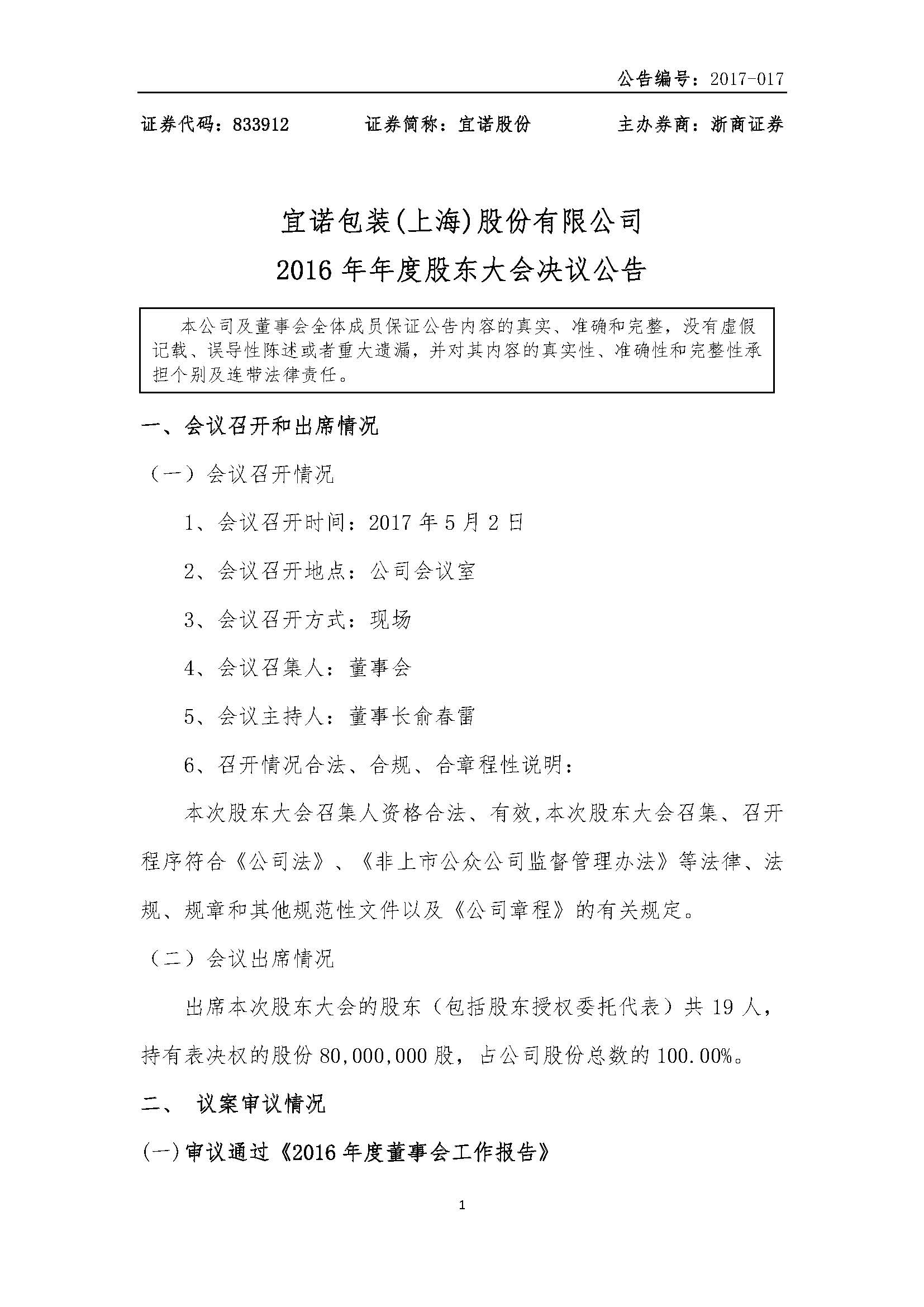 [临时公告]宜诺股份:2016年年度股东大会决议公告