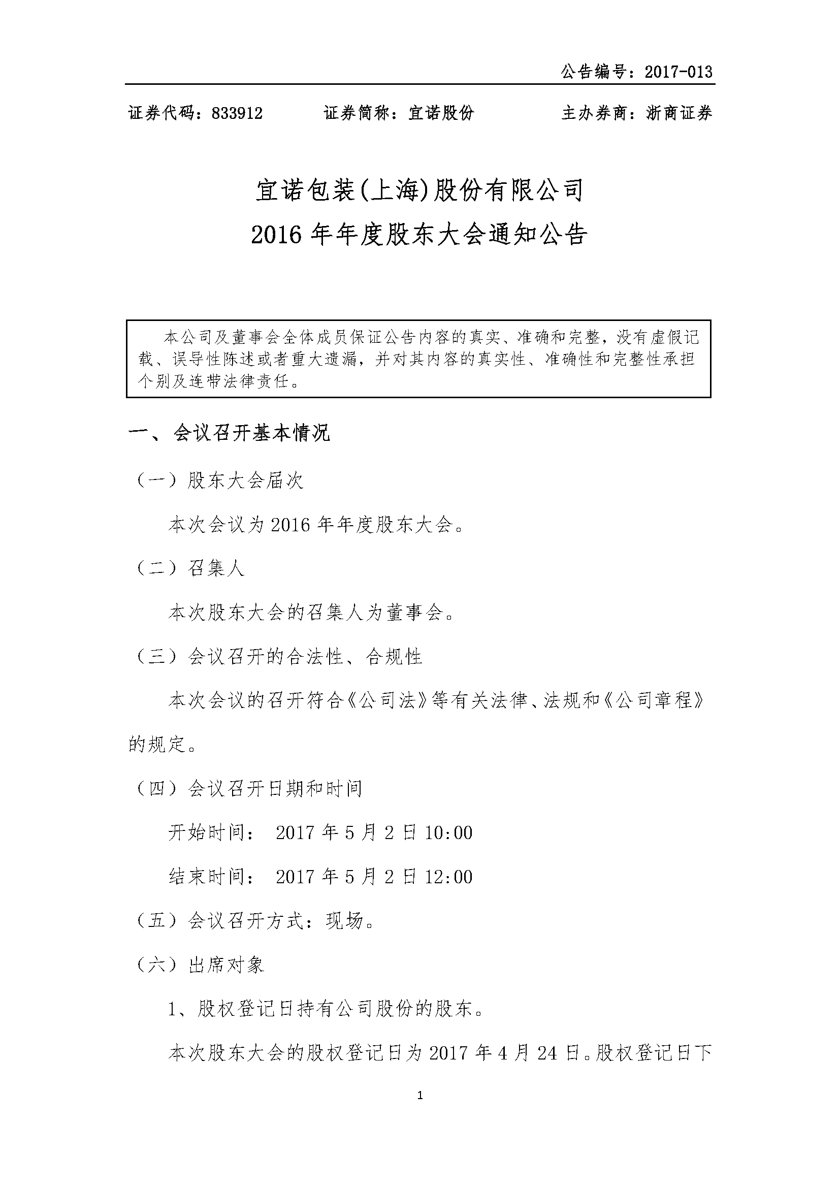 [临时公告]宜诺股份:2016年第七次临时股通知公告