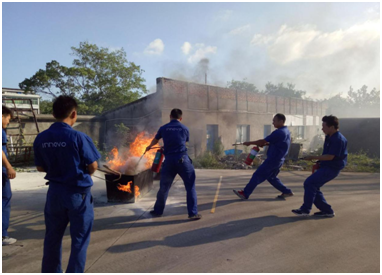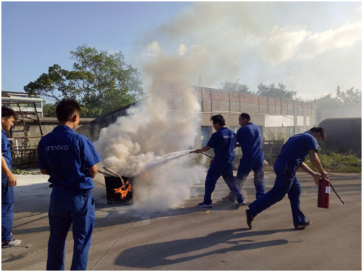 2016年10月4日台州环亚包装有限公司秋季消防演练现场、演练的第一个项目是快速灭火,小组队员提前做好了就位准备,当现场指挥员一声令下:前面就是火场,开始!队员们就像一只只离弦的箭,你追我赶风驰电掣般的奔赴着火点;说时迟那时快,复合车间的小伙儿们冲在最前面以迅雷不及掩耳之势对着火点一阵猛扫,顷刻间大火化为乌有,这充分体现出“预防为主、防消结合”的消防安全生产方针已在广大员工的心中深深的扎下了根,每一位员工在遇突发事件时,都具备消防队员的心理素质和灭火技能。