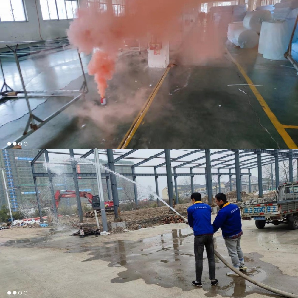 其次通过全员参加模拟火灾发生初级阶段使用灭火器扑灭的实操,消防水带、消防栓各部连接、供水并模拟灭火的各步骤操作。确保了对于灭火器,消防栓的正确使用公司全体员工全员掌握。在确保安全的前提下,利用演练专用烟雾弹模拟火场环境,公司全员进行了火场逃生演练。演练过程中,各部门员工表现出了公司多年坚持消防安全宣导工作,坚持消防安全演练工作的成效,捂鼻弯腰,就近逃生等火场逃生技巧的基本掌握。